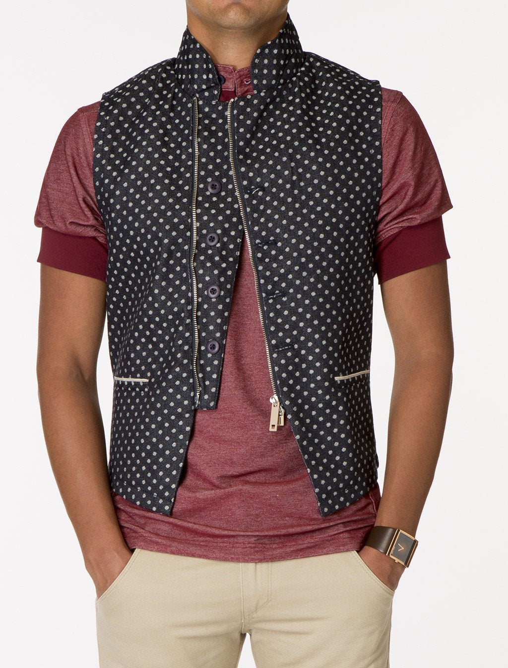 SATURN Denim Jacquard Polka Dot Vest
